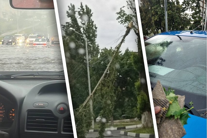 Непогода пришла в город примерно в 6 часов вечера: дождь стеной, молнии, раскаты грома, шквалистый ветер. А вместе с ними — поваленные деревья и разбитые машины, не справляющиеся с водой ливнёвки, оборванные провода. Губкинцы практически сразу начали рассказывать в соцсетях о последствиях непогоды в разных точках: