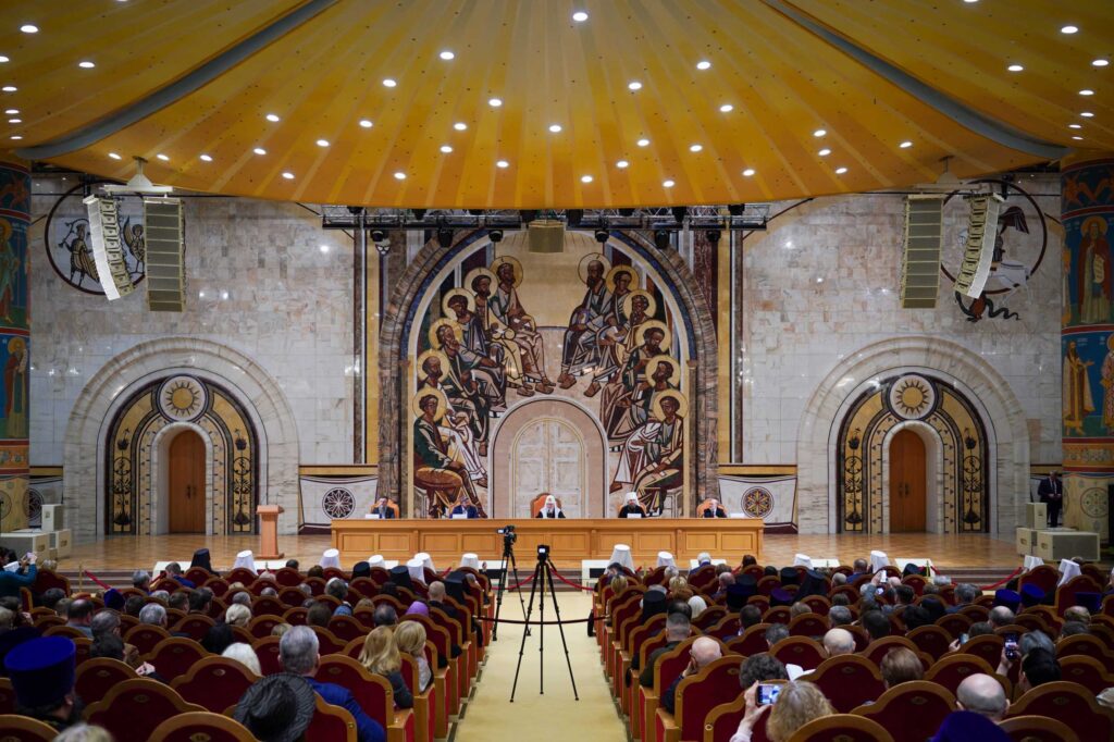 27 марта 2024 года в Зале церковных соборов кафедрального соборного Храма Христа Спасителя в Москве Святейший Патриарх Московский и всея Руси Кирилл возглавил внеочередной соборный съезд Международной общественной органи
