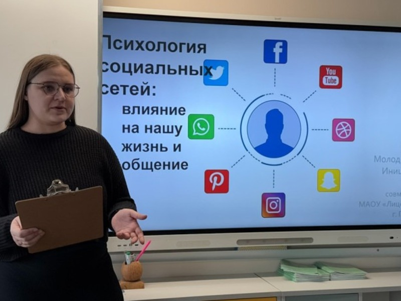 Специалист Центра молодёжных инициатив Мария Ильинских рассказала школьникам о том, как социальные сети влияют на жизнь и общение. В ходе мероприятия внимание было уделено как положительным, так и отрицательным аспектам виртуального общения.