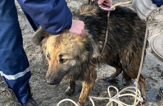 Фото: МЧС России Животные угодили в канализационный колодец в Разумном Выбраться из 4-метровой ямы самостоятельно они не могли.