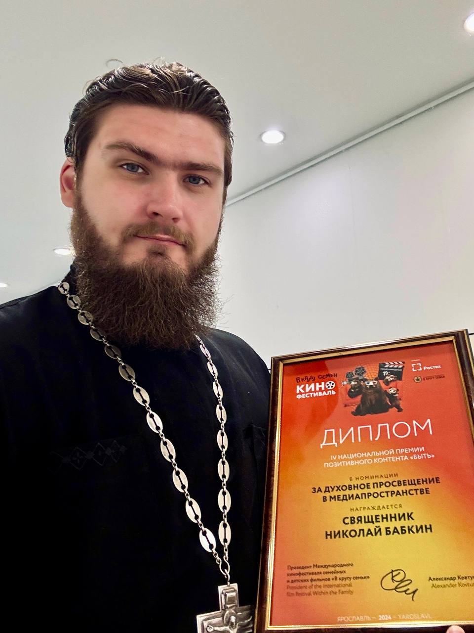 — Я на международном кинофестивале «В кругу семьи», самом крупном семейном фестивале в мире. 118 стран принимают участие на протяжении почти 20 лет. Международная обстановка не помеха. Как я сюда попал? Когда тебя годами критикуют за семейные фото, приятно получить премию за позитивный контент о семейных ценностях, да еще и на таком уровне! — рассказал священник в своём телеграм-канале.Напомним, что Николай Бабкин стал известен благодаря активности в соцсетях. В TikTok он запомнился пользователям ироничными роликами о семейной жизни и мифах о своём служении.