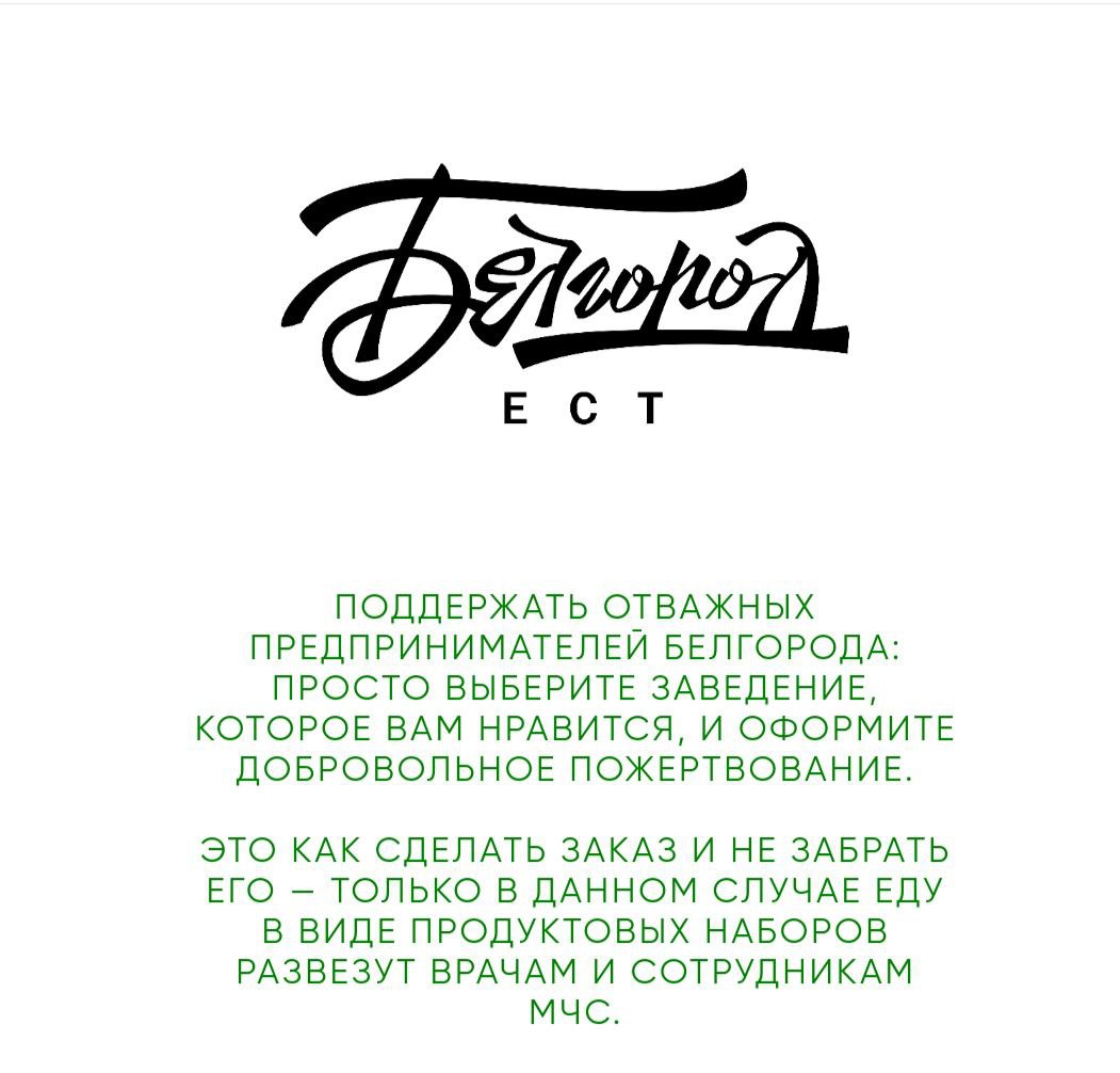 Сайт в поддержку белгородских заведений общественного питания начал свою работу и уже получил первые пожертвования. Автор проекта Александр Сысоев рассказывает, что часть пожертвованных денег будет идти на обеспечение работы заведения, оплату аренды и зарплату сотрудникам, а на оставшиеся средства рестораны соберут продуктовые наборы для врачей и сотрудников МЧС.
