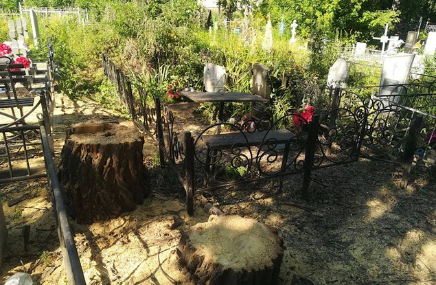 Ранее поступила жалоба от местной жительницы на повреждение могил после спила деревьев.