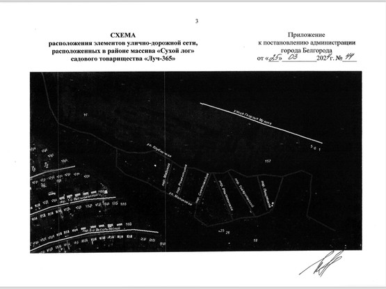 Постановление о присвоении наименований улично-дорожной сети в районе массива «Сухой лог» садового товарищества «Луч-365» приняла администрация Белгорода 25 марта.