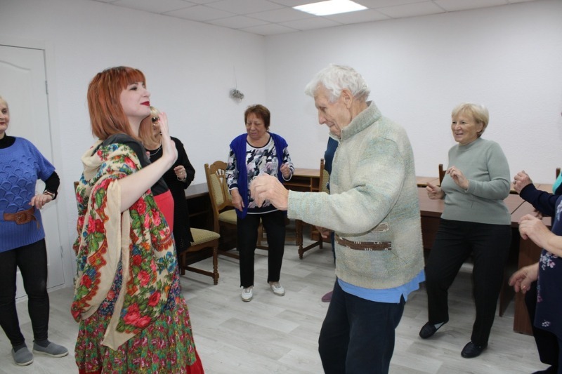 В Комплексном центре социального обслуживания населения с получателями услуг отделения дневного пребывания на еженедельной основе медицинская сестра проводит танцетерапию.