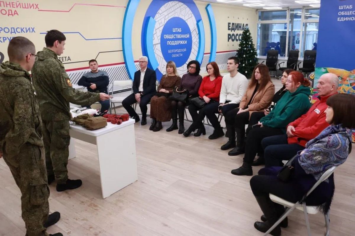 На площадке Штаба общественной поддержки 10 января курсанты Военного учебного центра имени Героя Советского Союза генерала армии Н.Ф. Ватутина при БГТУ им. В.Г. Шухова провели занятия по тактической медицине. Участниками первого занятия стали 17 белгородцев. Набор групп анонсируется в соцсетях и осуществляется по предварительной записи по телефону: (4722) 33-60-86 или 32-77-52.
